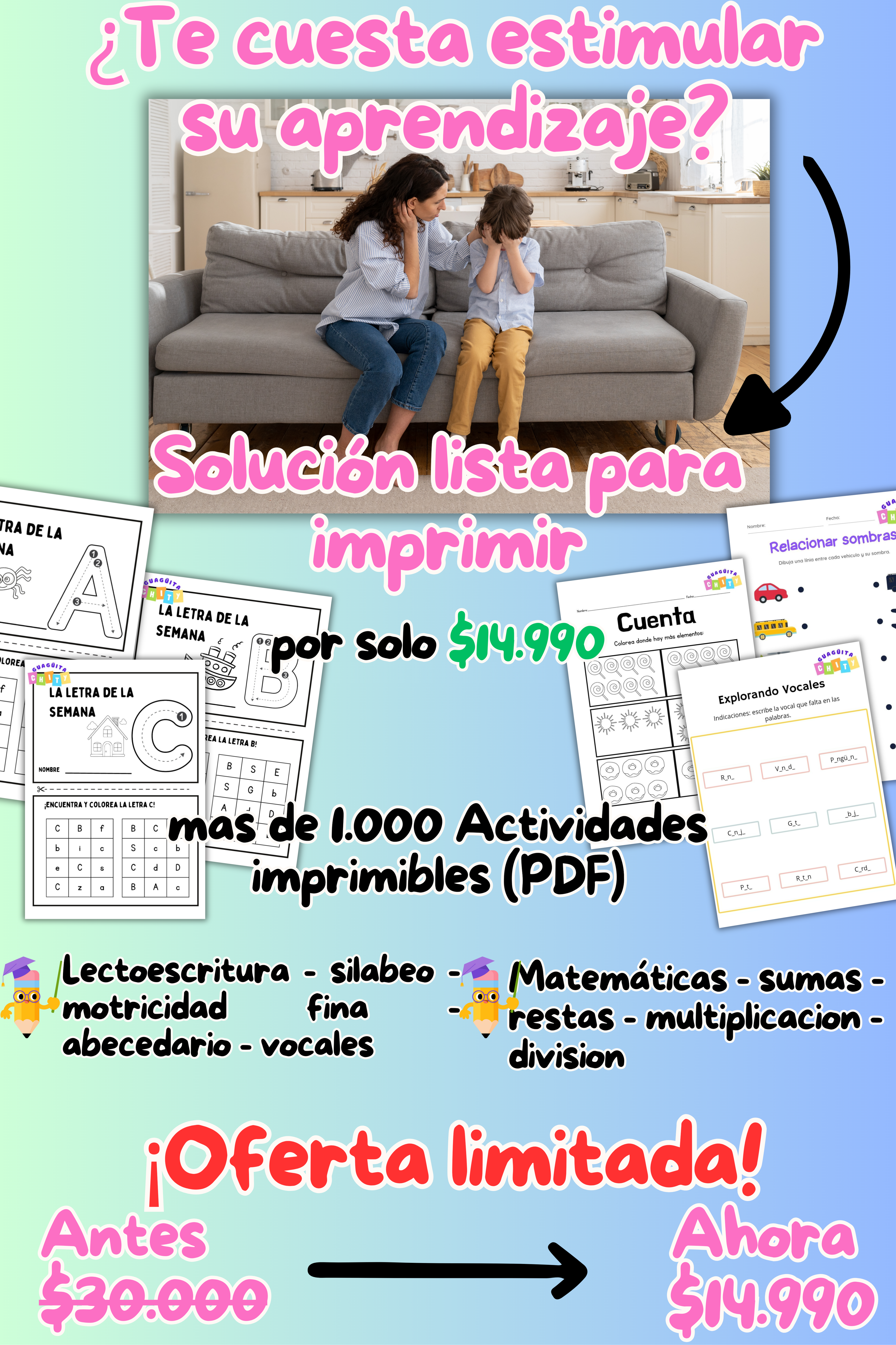 Mejorará caligrafía, aprenderá a leer y escribir, practicará inglés básico, desarrollará memoria y resolverá juegos de lógica.